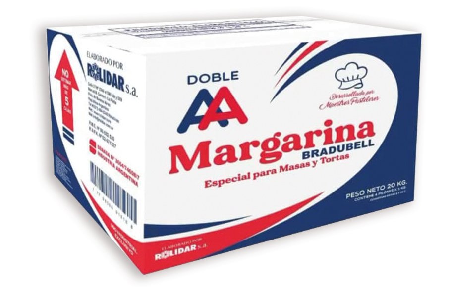 Elaborada a partir de oleomargarina bovina refinada, excelente presentación tanto para batido, como integrante de masa en pan dulce, budines, frola, masas secas y finas, etc.